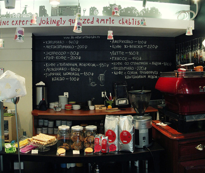 Надо заметить, конечно, что студия Артема Татьяновича (зачеркнуто) Андреевича не имеет ничего общего с «Живым журналом», однако его имя сразу ассоциируется с данной сетью блогов. Студия занимается разработкой дизайн-проектов, а самое кафе и лавка иже с ним – один из проектов Лебедева. В лавке вы можете провести свое время в поисках интересных открыток, книг и сувениров, а потом выпить кофе, практически не отходя от кассы. К чаю официантки, чьи волосы горят просто всеми цветами радуги от нежно-розового до темно-синего, подадут вам сухофрукты. Так же вы оцените разнообразную выпечку, представленную в изобилии.