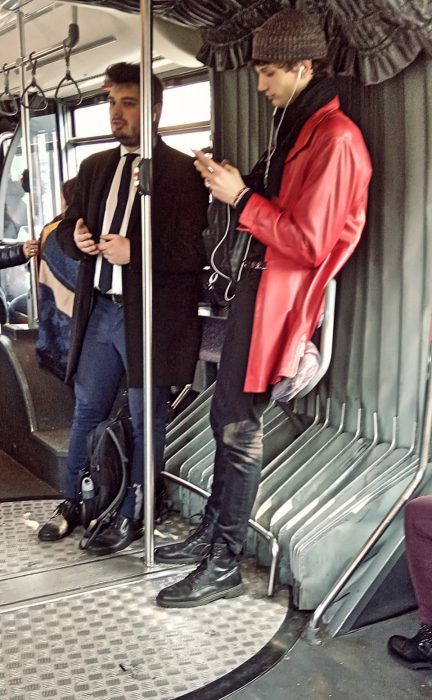 Также у миланцев особая любовь к приталенным силуэтам: куртки, пальто, кардиганы — все сплошь черного цвета и облегающие фигуру, несмотря на то, что по всему миру пропагандируется оверсайз и многослойность. Ещё женщины обожают носить клеш, будь то брюки, джинсы или кюлоты. Впрочем, с их безупречными фигурами (как у мужчин так и у женщин) можно себе позволить любой фасон. Также можно только позавидовать их предпочтениям в обуви: последние коллекции + натуральная кожа, хотя и обычные кроссовки встречаются довольно-таки часто. Кстати, наличие поддельной сумки от LV (Louis Vuitton) у каждой третьей женщины на улицах Милана (жительницы ли?) — лично меня очень смущало: на родине и в мастерской владельцев бренда — это просто кощунственно так спокойно «выгуливать» фейк…
